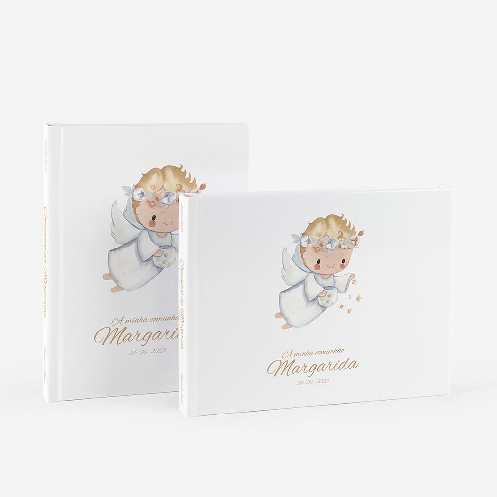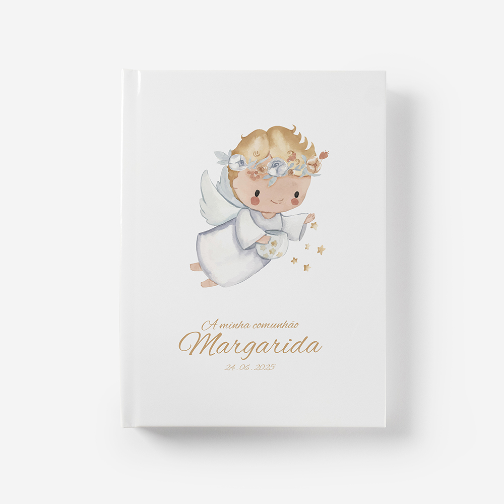 Este álbum é ideal para os mais novos e perfeito para quem quer guardar a comunhão de forma simples, mas com significado. Personalizar com nomes, datas e fotos. E pode também ser uma bonita lembrança para oferecer à família.