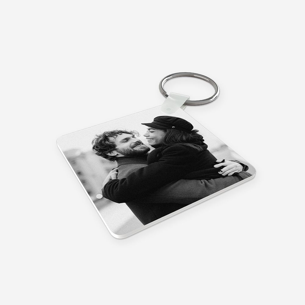 Com formato quadrado e personalização total (100%) em ambas as faces, este porta-chaves transforma qualquer foto ou frase num presente romântico e inesquecível.